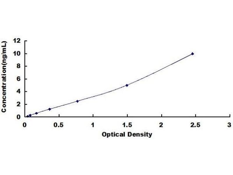 - Standard - Reconstitute the Standard with 1.0mL of Standard Diluent, kept for 10 minutes at room temperature, shake gently (not to foam). The concentration of the standard in the stock solution is 40ng/mL. Firstly dilute the stock solution to 10ng/mL and the diluted standard serves as the highest standard (10ng/mL). Then prepare 7 tubes containing 0.5mL Standard Diluent and use the diluted standard to produce a double dilution series. Mix each tube thoroughly before the next transfer. Set up 7 points of diluted standard such as 10ng/mL, 5ng/mL, 2.5ng/mL, 1.25ng/mL, 0.625ng/mL, 0.312ng/mL, 0.156ng/mL, and the last tubes with Standard Diluent is the blank as 0ng/mL.
