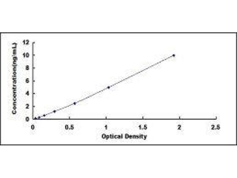 - Standard - Reconstitute the Standard with 1.0 mL of Standard Diluent, keep for 10 minutes at room temperature, shake gently (not to foam). The concentration of the standard in the stock solution is 100 ng/mL. Firstly dilute the stock solution to 10 ng/mL and the diluted standard serves as the highest standard (10 ng/mL). Then prepare 7 tubes containing 0.5 mL Standard Diluent and use the diluted standard to produce a double dilution series. Mix each tube thoroughly before the next transfer. Set up 7 points of diluted standard such as 10 ng/mL, 5 ng/mL, 2.5 ng/mL, 1.25 ng/mL, 0.625 ng/mL, 0.312 ng/mL, 0.156 ng/mL, and the last microcentrifuge tube with Standard Diluent is the blank as 0 ng/mL.