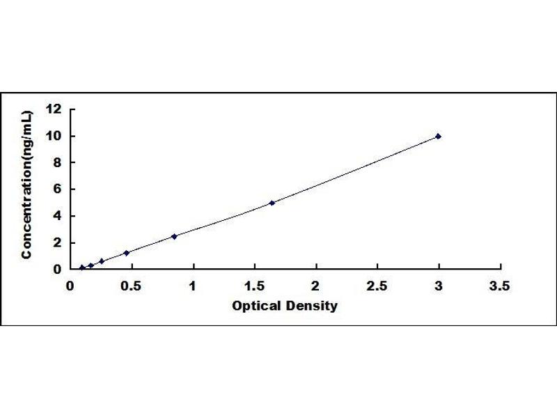 - Standard - Reconstitute the Standard with 1.0 mL of Standard Diluent, keep for 10 minutes at room temperature, shake gently (not to foam). The concentration of the standard in the stock solution is 80 ng/mL. Firstly dilute the stock solution to 10 ng/mL and the diluted standard serves as the highest standard (10 ng/mL). Then prepare 7 tubes containing 0.5 mL Standard Diluent and use the diluted standard to produce a double dilution series. Mix each tube thoroughly before the next transfer. Set up 7 points of diluted standard such as 10 ng/mL, 5 ng/mL, 2.5 ng/mL, 1.25 ng/mL, 0.625 ng/mL, 0.312 ng/mL, 0.156 ng/mL, and the last microcentrifuge tube with Standard Diluent is the blank as 0 ng/mL.