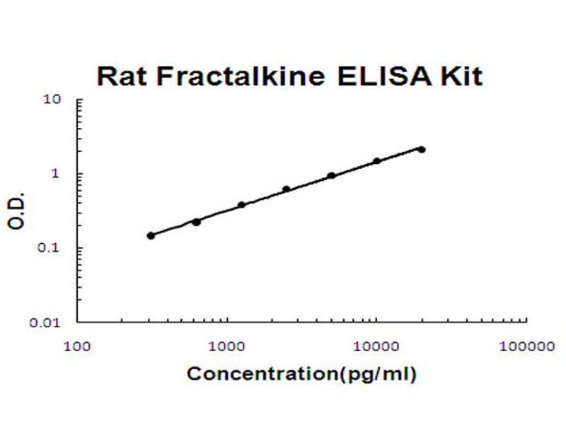 Useful in Sandwich ELISA for Quantitative Detection of Antigen. Aliquot 0.1 mL per well of the 20000pg/mL, 10000pg/mL, 5000pg/mL, 2500pg/mL, 1250pg/mL, 625pg/mL, 312pg/mL rat Fractalkine standard solutions into the precoated 96-well plate. Add 0.1 mL of the sample diluent buffer into the control well (Zero well). Add 0.1 mL of each properly diluted sample of rat cell culture supernates, serum, plasma(heparin, EDTA) or tissue homogenates to each empty well. It is recommended that each rat Fractalkine standard solution and each sample be measured in duplicate.