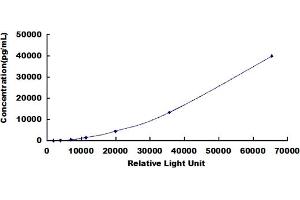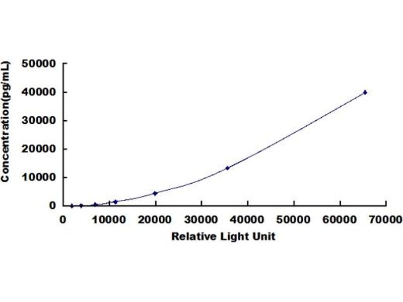 In order to make the calculation easier, we plot the RLU value of the standard (X-axis) against the known concentration of the standard (Y-axis), although concentration is indeed the independent variable while RLU value is the dependent variable. Further, in this part, in order to help the customer perform the assay more visual, we provide the customer with the raw data (not the log of data). However, plotting log of the data to construct the curve will be recommended. The RLU values of the standard curve may vary according to the conditions of assay performance (e.g. operator, pipetting technique, washing technique or temperature effects). This curve is provided for demonstration only. The customers should establish their own standard curve for each test conducted. -