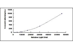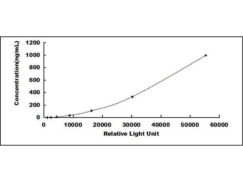 In order to make the calculation easier, we plot the RLU value of the standard (X-axis) against the known concentration of the standard (Y-axis), although concentration is indeed the independent variable while RLU value is the dependent variable. Further, in this part, in order to help the customer perform the assay more visual, we provide the customer with the raw data (not the log of data). However, plotting log of the data to construct the curve will be recommended. The RLU values of the standard curve may vary according to the conditions of assay performance (e.g. operator, pipetting technique, washing technique or temperature effects). This curve is provided for demonstration only. The customers should establish their own standard curve for each test conducted. -
