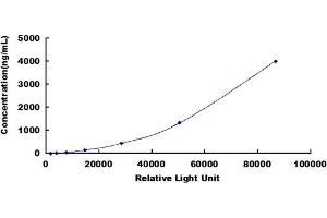 In order to make the calculation easier, we plot the RLU value of the standard (X-axis) against the known concentration of the standard (Y-axis), although concentration is indeed the independent variable while RLU value is the dependent variable. Further, in this part, in order to help the customer perform the assay more visual, we provide the customer with the raw data (not the log of data). However, plotting log of the data to construct the curve will be recommended. The RLU values of the standard curve may vary according to the conditions of assay performance (e.g. operator, pipetting technique, washing technique or temperature effects). This curve is provided for demonstration only. The customers should establish their own standard curve for each test conducted. -