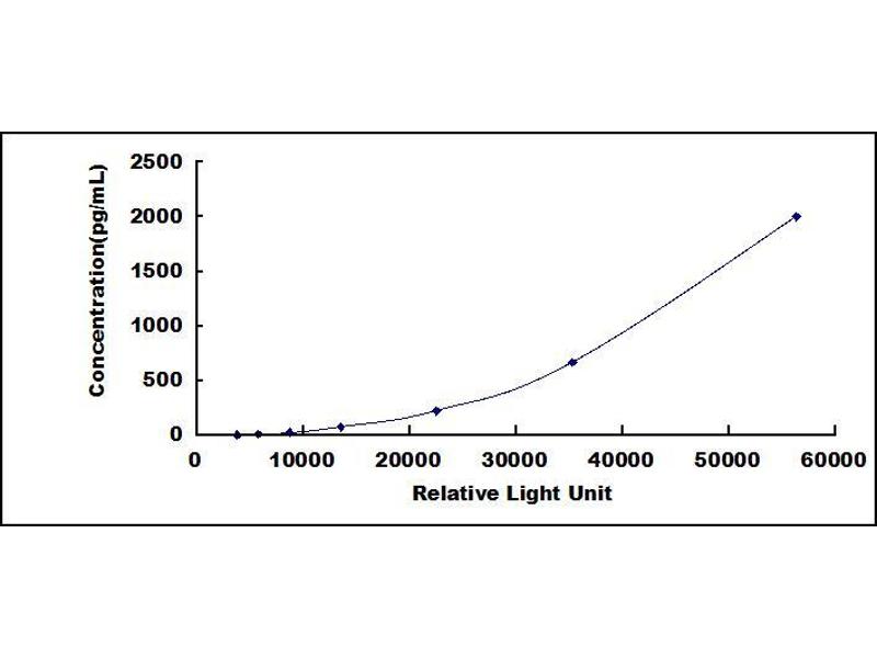 In order to make the calculation easier, we plot the RLU value of the standard (X-axis) against the known concentration of the standard (Y-axis), although concentration is indeed the independent variable while RLU value is the dependent variable. Further, in this part, in order to help the customer perform the assay more visual, we provide the customer with the raw data (not the log of data). However, plotting log of the data to construct the curve will be recommended. The RLU values of the standard curve may vary according to the conditions of assay performance (e.g. operator, pipetting technique, washing technique or temperature effects). This curve is provided for demonstration only. The customers should establish their own standard curve for each test conducted. -