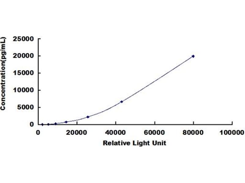 In order to make the calculation easier, we plot the RLU value of the standard (X-axis) against the known concentration of the standard (Y-axis), although concentration is indeed the independent variable while RLU value is the dependent variable. Further, in this part, in order to help the customer perform the assay more visual, we provide the customer with the raw data (not the log of data). However, plotting log of the data to construct the curve will be recommended. The RLU values of the standard curve may vary according to the conditions of assay performance (e.g. operator, pipetting technique, washing technique or temperature effects). This curve is provided for demonstration only. The customers should establish their own standard curve for each test conducted. -