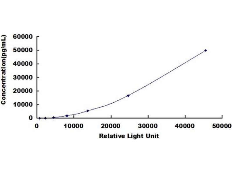 In order to make the calculation easier, we plot the RLU value of the standard (X-axis) against the known concentration of the standard (Y-axis), although concentration is indeed the independent variable while RLU value is the dependent variable. Further, in this part, in order to help the customer perform the assay more visual, we provide the customer with the raw data (not the log of data). However, plotting log of the data to construct the curve will be recommended. The RLU values of the standard curve may vary according to the conditions of assay performance (e.g. operator, pipetting technique, washing technique or temperature effects). This curve is provided for demonstration only. The customers should establish their own standard curve for each test conducted. -