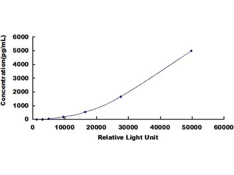In order to make the calculation easier, we plot the RLU value of the standard (X-axis) against the known concentration of the standard (Y-axis), although concentration is indeed the independent variable while RLU value is the dependent variable. Further, in this part, in order to help the customer perform the assay more visual, we provide the customer with the raw data (not the log of data). However, plotting log of the data to construct the curve will be recommended. The RLU values of the standard curve may vary according to the conditions of assay performance (e.g. operator, pipetting technique, washing technique or temperature effects). This curve is provided for demonstration only. The customers should establish their own standard curve for each test conducted.