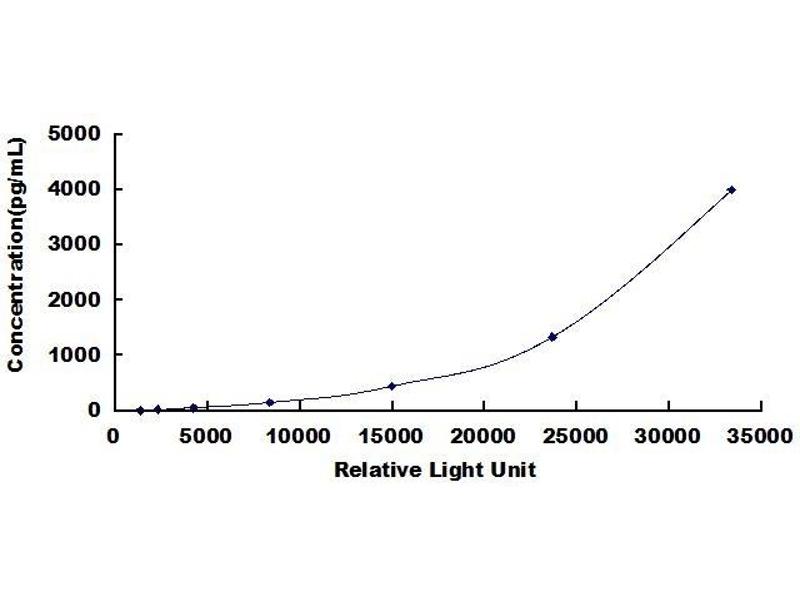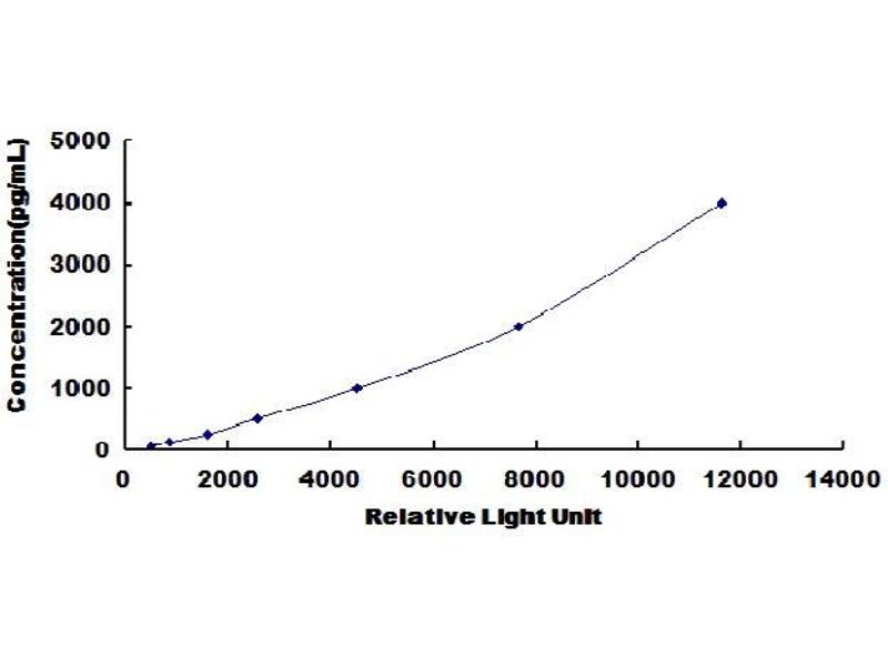 In order to make the calculation easier, we plot the RLU value of the standard (X-axis) against the known concentration of the standard (Y-axis), although concentration is indeed the independent variable while RLU value is the dependent variable. Further, in this part, in order to help the customer perform the assay more visual, we provide the customer with the raw data (not the log of data). However, plotting log of the data to construct the curve will be recommended. The RLU values of the standard curve may vary according to the conditions of assay performance (e.g. operator, pipetting technique, washing technique or temperature effects). This curve is provided for demonstration only. The customers should establish their own standard curve for each test conducted.