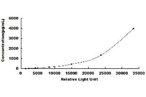 In order to make the calculation easier, we plot the RLU value of the standard (X-axis) against the known concentration of the standard (Y-axis), although concentration is indeed the independent variable while RLU value is the dependent variable. Further, in this part, in order to help the customer perform the assay more visual, we provide the customer with the raw data (not the log of data). However, plotting log of the data to construct the curve will be recommended. The RLU values of the standard curve may vary according to the conditions of assay performance (e.g. operator, pipetting technique, washing technique or temperature effects). This curve is provided for demonstration only. The customers should establish their own standard curve for each test conducted. -