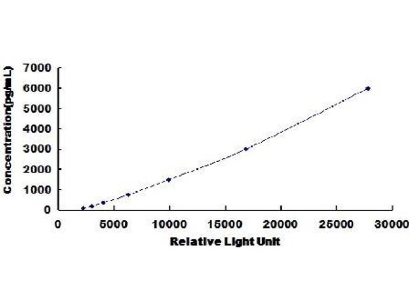 In order to make the calculation easier, we plot the RLU value of the standard (X-axis) against the known concentration of the standard (Y-axis), although concentration is indeed the independent variable while RLU value is the dependent variable. Further, in this part, in order to help the customer perform the assay more visual, we provide the customer with the raw data (not the log of data). However, plotting log of the data to construct the curve will be recommended. The RLU values of the standard curve may vary according to the conditions of assay performance (e.g. operator, pipetting technique, washing technique or temperature effects). This curve is provided for demonstration only. The customers should establish their own standard curve for each test conducted. -