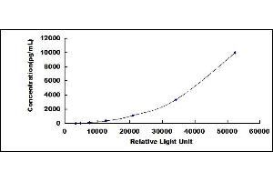 In order to make the calculation easier, we plot the RLU value of the standard (X-axis) against the known concentration of the standard (Y-axis), although concentration is indeed the independent variable while RLU value is the dependent variable. Further, in this part, in order to help the customer perform the assay more visual, we provide the customer with the raw data (not the log of data). However, plotting log of the data to construct the curve will be recommended. The RLU values of the standard curve may vary according to the conditions of assay performance (e.g. operator, pipetting technique, washing technique or temperature effects). This curve is provided for demonstration only. The customers should establish their own standard curve for each test conducted. -