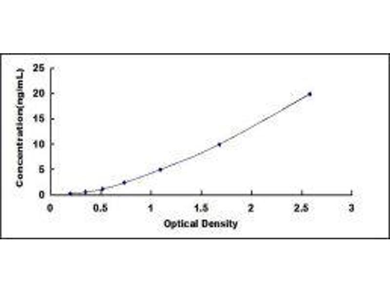 2. Standard - Reconstitute the Standard with 1.0 mL of Standard Diluent, keep for 10 minutes at room temperature, shake gently (not to foam). The concentration of the standard in the stock solution is 80 ng/mL. Firstly dilute the stock solution to 20 ng/mL and the diluted standard serves as the highest standard (20 ng/mL). Then prepare 7 tubes containing 0.5 mL Standard Diluent and use the diluted standard to produce a double dilution series. Mix each tube thoroughly before the next transfer. Set up 7 points of diluted standard such as 20 ng/mL, 10 ng/mL, 5 ng/mL, 2.5 ng/mL, 1.25 ng/mL, 0.625 ng/mL, 0.312 ng/mL, and the last microcentrifuge tube with Standard Diluent is the blank as 0 ng/mL.