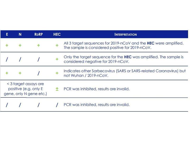 - For a sample to be considered positive for 2019-nCoV, both assays (E / RdRP) must give positive Ct values. If the HEC fails to amplify, the sample must still be considered positive.