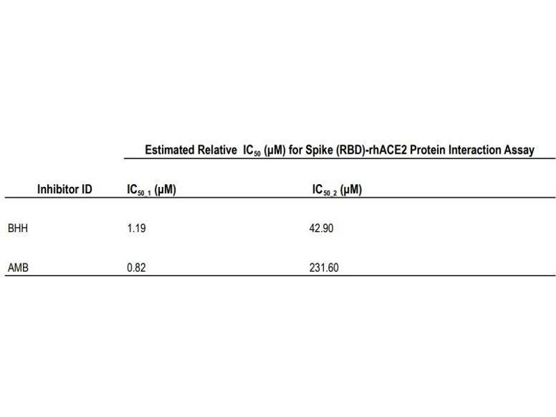 - The COVID-19 Spike-ACE2 binding assay uses a 96-well plate coated with recombinantly-expressed RBD of the SARS-CoV-2 Spike protein. The testing reagent-of-choice is then added to the wells in the presence of recombinant human ACE2 protein. Unbound ACE2 is removed with washing, and a goat anti-ACE2 antibody is added that binds to the Spike-ACE2 complex. HRP-conjugated anti-goat IgG is then applied to the wells in the presence of 3,3',5,5'-tetramethylbenzidine (TMB) substrate. The HRP-conjugated anti-goat IgG binds to the ACE2 antibody and reacts with the TMB solution, producing a blue color that is proportional to the amount of bound ACE. The HRP-TMB reaction is halted with the addition of the Stop Solution, resulting in a blue-to-yellow color change. The intensity of the yellow color is then measured at 450 nm.