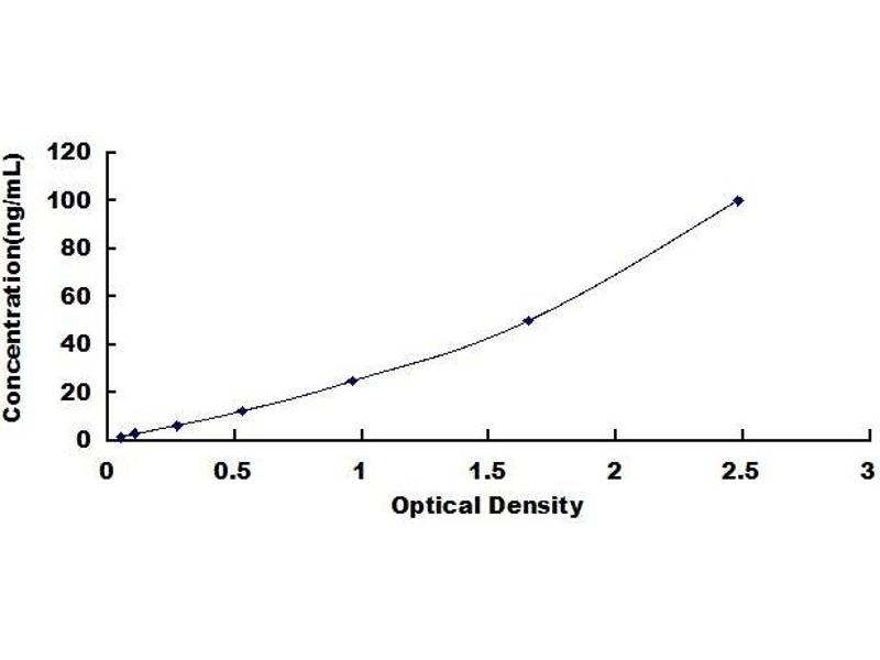 - Standard - Reconstitute the Standard with 1.0 mL of Standard Diluent, keep for 10 minutes at room temperature, shake gently (not to foam). The concentration of the standard in the stock solution is 400 ng/mL. Firstly dilute the stock solution to 100 ng/mL and the diluted standard serves as the highest standard (100 ng/mL). Then prepare 7 tubes containing 0.5 mL Standard Diluent and use the diluted standard to produce a double dilution series. Mix each tube thoroughly before the next transfer. Set up 7 points of diluted standard such as 100 ng/mL, 50 ng/mL, 25 ng/mL, 12.5 ng/mL, 6.25 ng/mL, 3.12 ng/mL, 1.56 ng/mL, and the last microcentrifuge tube with Standard Diluent is the blank as 0 ng/mL.