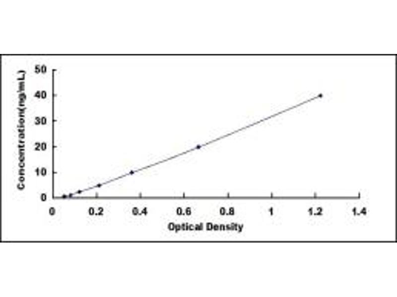 - Standard - Reconstitute the Standard with 1.0 mL of Standard Diluent, keep for 10 minutes at room temperature, shake gently (not to foam). The concentration of the standard in the stock solution is 80 ng/mL. Firstly dilute the stock solution to 40 ng/mL and the diluted standard serves as the highest standard (40 ng/mL). Then prepare 7 tubes containing 0.5 mL Standard Diluent and use the diluted standard to produce a double dilution series. Mix each tube thoroughly before the next transfer. Set up 7 points of diluted standard such as 40 ng/mL, 20 ng/mL, 10 ng/mL, 5 ng/mL, 2.5 ng/mL, 1.25 ng/mL, 0.625 ng/mL, and the last microcentrifuge tube with Standard Diluent is the blank as 0 ng/mL.