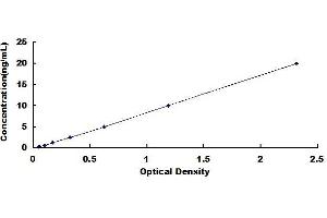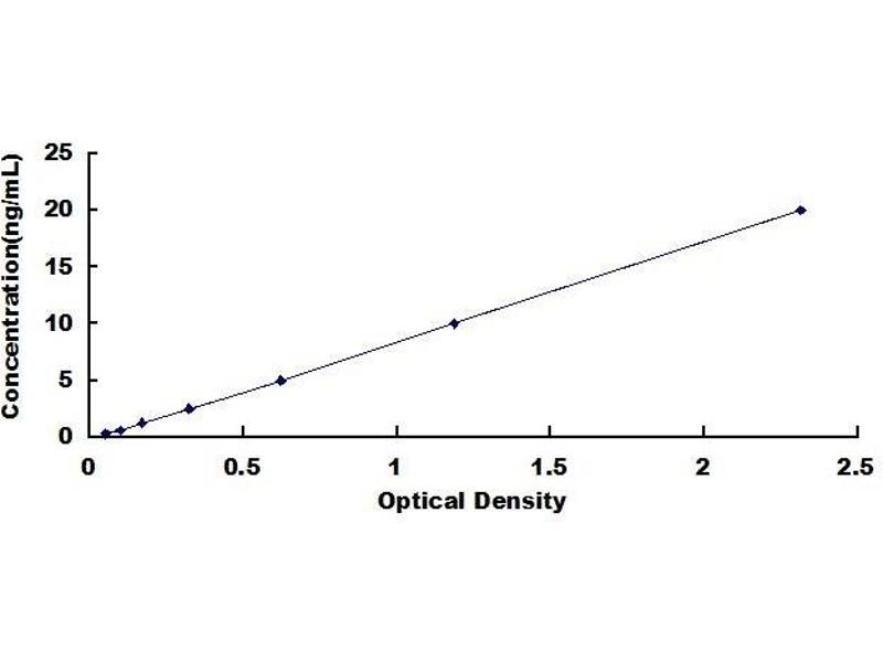 - Standard - Reconstitute the Standard with 1.0 mL of Standard Diluent, keep for 10 minutes at room temperature, shake gently (not to foam). The concentration of the standard in the stock solution is 200 ng/mL. Firstly dilute the stock solution to 20 ng/mL and the diluted standard serves as the highest standard (20 ng/mL). Then prepare 7 tubes containing 0.5 mL Standard Diluent and use the diluted standard to produce a double dilution series. Mix each tube thoroughly before the next transfer. Set up 7 points of diluted standard such as 20 ng/mL, 10 ng/mL, 5 ng/mL, 2.5 ng/mL, 1.25 ng/mL, 0.625 ng/mL, 0.312 ng/mL, and the last microcentrifuge tube with Standard Diluent is the blank as 0 ng/mL.