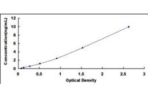 2. Standard - Reconstitute the Standard with 1.0 mL of Standard Diluent, keep for 10 minutes at room temperature, shake gently (not to foam). The concentration of the standard in the stock solution is 10 ng/mL. Prepare 7 tubes containing 0.5 mL Standard Diluent and produce a double dilution series. Mix each tube thoroughly before the next transfer. Set up 7 points of diluted standard such as 10 ng/mL, 5 ng/mL, 2.5 ng/mL, 1.25 ng/mL, 0.625 ng/mL, 0.312 ng/mL, 0.156 ng/mL, and the last microcentrifuge tube with Standard Diluent is the blank as 0 ng/mL.