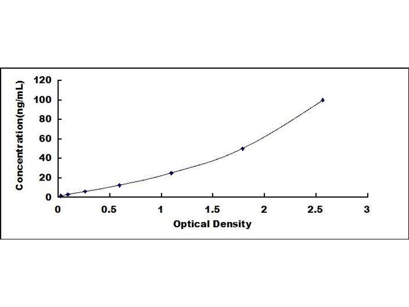 2. Standard - Reconstitute the Standard with 1.0 mL of Standard Diluent, keep for 10 minutes at room temperature, shake gently (not to foam). The concentration of the standard in the stock solution is 200 ng/mL. Firstly dilute the stock solution to 100 ng/mL and the diluted standard serves as the highest standard (100 ng/mL). Then prepare 7 tubes containing 0.5 mL Standard Diluent and use the diluted standard to produce a double dilution series. Mix each tube thoroughly before the next transfer. Set up 7 points of diluted standard such as 100 ng/mL, 50 ng/mL, 25 ng/mL, 12.5 ng/mL, 6.25 ng/mL, 3.12 ng/mL, 1.56 ng/mL, and the last microcentrifuge tube with Standard Diluent is the blank as 0 ng/mL.