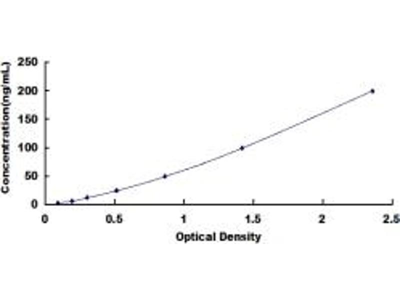 In order to make the calculation easier, we plot the O.D. value of the standard (X-axis) against the log of concentration of the standard (Y-axis), although concentration is the independent variable and O.D. value is the dependent variable. The O.D. values of the standard curve may vary according to the conditions of assay performance (e.g. operator, pipetting technique, washing technique or temperature effects). Typical standard curve below is provided for reference only. -