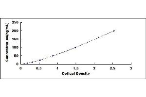This assay employs the competitive inhibition enzyme immunoassay technique, so there is an inverse correlation between target concentration in the sample and the assay signal intensity. Average the duplicate readings for each standard, control, and samples. Create a standard curve on log-log or semi-log graph paper, with the log of target concentration on the y-axis and absorbance on the x-axis. Draw the best fit straight line through the standard points and it can be determined by regression analysis. Using some plot software, for instance, curve expert 1.30, is also recommended. If samples have been diluted, the concentration read from the standard curve must be multiplied by the dilution factor.