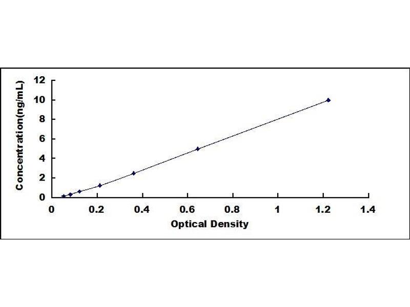 - Standard - Reconstitute the Standard with 1.0 mL of Standard Diluent, keep for 10 minutes at room temperature, shake gently (not to foam). The concentration of the standard in the stock solution is 40 ng/mL. Firstly dilute the stock solution to 10 ng/mL and the diluted standard serves as the highest standard (10 ng/mL). Then prepare 7 tubes containing 0.5 mL Standard Diluent and use the diluted standard to produce a double dilution series. Mix each tube thoroughly before the next transfer. Set up 7 points of diluted standard such as 10 ng/mL, 5 ng/mL, 2.5 ng/mL, 1.25 ng/mL, 0.625 ng/mL, 0.312 ng/mL, 0.156 ng/mL, and the last microcentrifuge tube with Standard Diluent is the blank as 0 ng/mL.