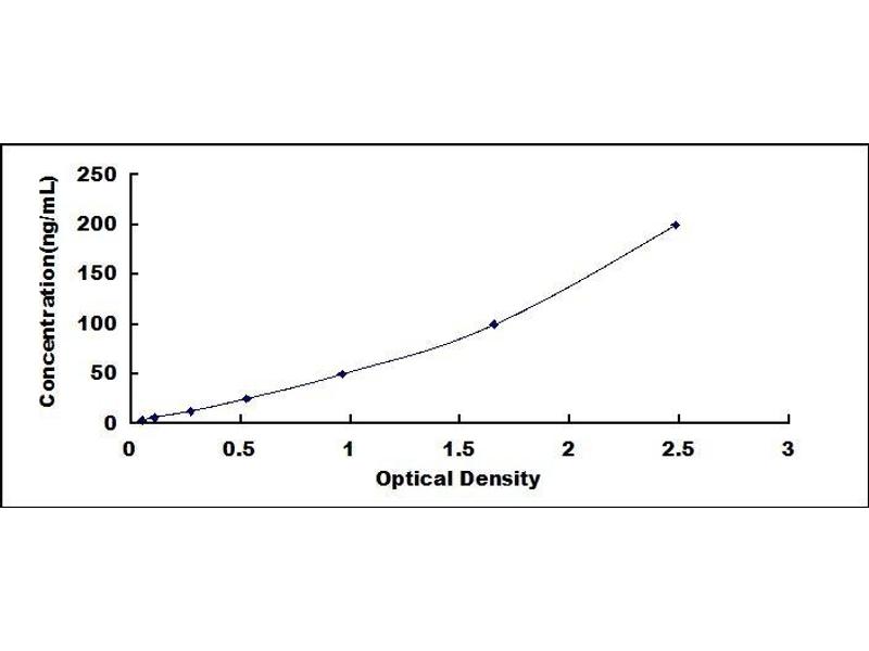 2. Standard - Reconstitute the Standard with 1.0 mL of Standard Diluent, keep for 10 minutes at room temperature, shake gently (not to foam). The concentration of the standard in the stock solution is 2,000 ng/mL. Firstly dilute the stock solution to 200 ng/mL and the diluted standard serves as the highest standard (200 ng/mL). Then prepare 7 tubes containing 0.5 mL Standard Diluent and use the diluted standard to produce a double dilution series. Mix each tube thoroughly before the next transfer. Set up 7 points of diluted standard such as 200 ng/mL, 100 ng/mL, 50 ng/mL, 25 ng/mL, 12.5 ng/mL, 6.25 ng/mL, 3.12 ng/mL, and the last microcentrifuge tube with Standard Diluent is the blank as 0 ng/mL.