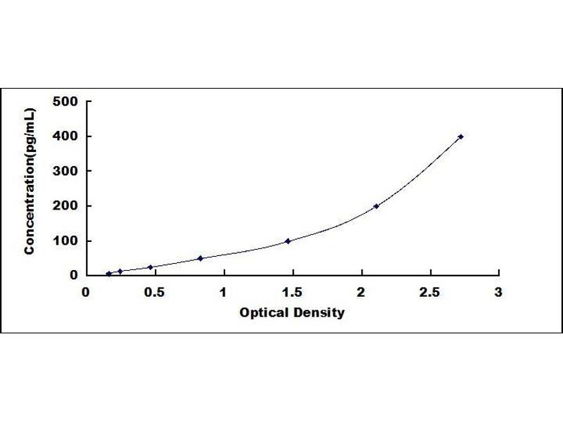 2. Standard - Reconstitute the Standard with 1.0 mL of Standard Diluent, keep for 10 minutes at room temperature, shake gently (not to foam). The concentration of the standard in the stock solution is 400pg/mL. Prepare 7 tubes containing 0.5 mL Standard Diluent and produce a double dilution series. Mix each tube thoroughly before the next transfer. Set up 7 points of diluted standard such as 400pg/mL, 200pg/mL, 100pg/mL, 50pg/mL, 25pg/mL, 12.5pg/mL, 6.25pg/mL, and the last microcentrifuge tube with Standard Diluent is the blank as 0pg/mL.