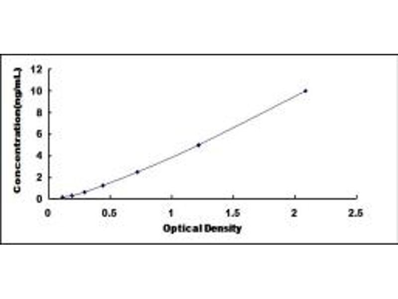 2. Standard - Reconstitute the Standard with 0.5 mL of Standard Diluent, keep for 10 minutes at room temperature, shake gently (not to foam). The concentration of the standard in the stock solution is 10 ng/mL. Prepare 7 tubes containing 0.25 mL Standard Diluent and produce a double dilution series. Mix each tube thoroughly before the next transfer. Set up 7 points of diluted standard such as 10 ng/mL, 5 ng/mL, 2.5 ng/mL, 1.25 ng/mL, 0.625 ng/mL, 0.312 ng/mL, 0.156 ng/mL, and the last microcentrifuge tube with Standard Diluent is the blank as 0 ng/mL.