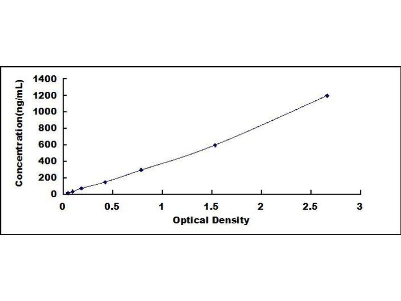 - Standard - Reconstitute the Standard with 1.0 mL of Standard Diluent, keep for 10 minutes at room temperature, shake gently (not to foam). The concentration of the standard in the stock solution is 4,800 ng/mL. Firstly dilute the stock solution to 1,200 ng/mL and the diluted standard serves as the highest standard (1,200 ng/mL). Then prepare 7 tubes containing 0.5 mL Standard Diluent and use the diluted standard to produce a double dilution series. Mix each tube thoroughly before the next transfer. Set up 7 points of diluted standard such as 1,200 ng/mL, 600 ng/mL, 300 ng/mL, 150 ng/mL, 75 ng/mL, 37.5 ng/mL, 18.8 ng/mL, and the last microcentrifuge tube with Standard Diluent is the blank as 0 ng/mL.