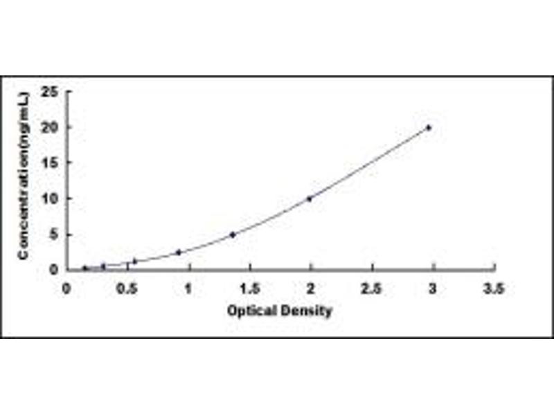 - Standard - Reconstitute the Standard with 1.0 mL of Standard Diluent, keep for 10 minutes at room temperature, shake gently (not to foam). The concentration of the standard in the stock solution is 160 ng/mL. Firstly dilute the stock solution to 20 ng/mL and the diluted standard serves as the highest standard (20 ng/mL). Then prepare 7 tubes containing 0.5 mL Standard Diluent and use the diluted standard to produce a double dilution series. Mix each tube thoroughly before the next transfer. Set up 7 points of diluted standard such as 20 ng/mL, 10 ng/mL, 5 ng/mL, 2.5 ng/mL, 1.25 ng/mL, 0.625 ng/mL, 0.312 ng/mL, and the last microcentrifuge tube with Standard Diluent is the blank as 0 ng/mL.