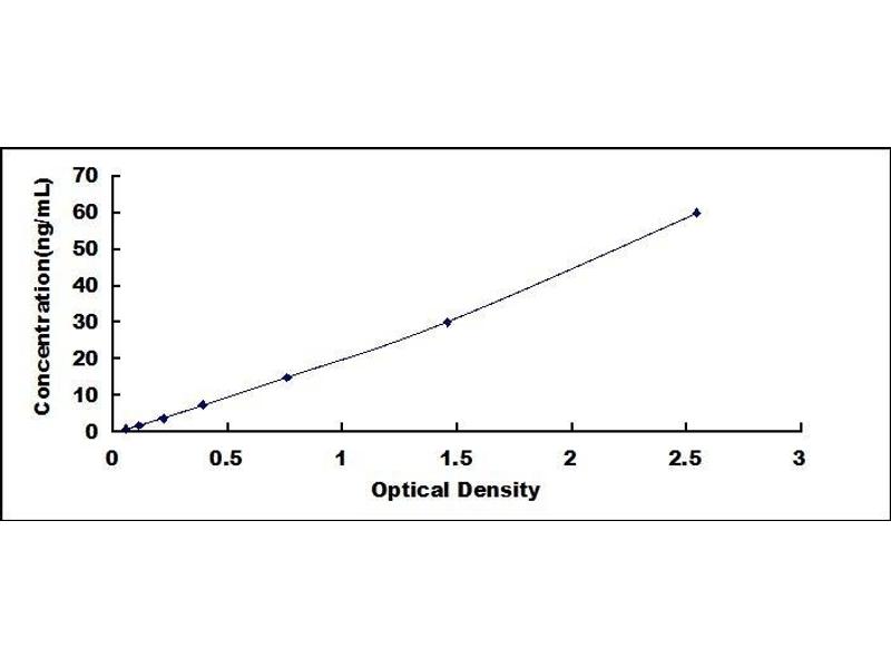 - Standard - Reconstitute the Standard with 1.0 mL of Standard Diluent, keep for 10 minutes at room temperature, shake gently (not to foam). The concentration of the standard in the stock solution is 240 ng/mL. Firstly dilute the stock solution to 60 ng/mL and the diluted standard serves as the highest standard (60 ng/mL). Then prepare 7 tubes containing 0.5 mL Standard Diluent and use the diluted standard to produce a double dilution series. Mix each tube thoroughly before the next transfer. Set up 7 points of diluted standard such as 60 ng/mL, 30 ng/mL, 15 ng/mL, 7.5 ng/mL, 3.75 ng/mL, 1.88 ng/mL, 0.94 ng/mL, and the last microcentrifuge tube with Standard Diluent is the blank as 0 ng/mL.