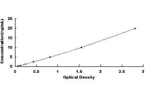 2. Standard - Reconstitute the Standard with 1.0 mL of Standard Diluent, keep for 10 minutes at room temperature, shake gently (not to foam). The concentration of the standard in the stock solution is 40 ng/mL. Firstly dilute the stock solution to 20 ng/mL and the diluted standard serves as the highest standard (20 ng/mL). Then prepare 7 tubes containing 0.5 mL Standard Diluent and use the diluted standard to produce a double dilution series. Mix each tube thoroughly before the next transfer. Set up 7 points of diluted standard such as 20 ng/mL, 10 ng/mL, 5 ng/mL, 2.5 ng/mL, 1.25 ng/mL, 0.625 ng/mL, 0.312 ng/mL, and the last microcentrifuge tube with Standard Diluent is the blank as 0 ng/mL.