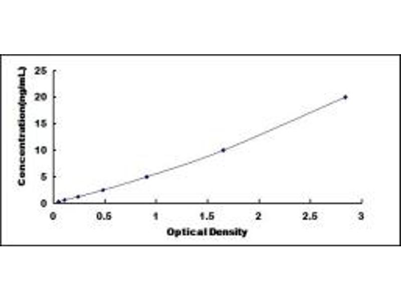 - Standard - Reconstitute the Standard with 1.0 mL of Standard Diluent, keep for 10 minutes at room temperature, shake gently (not to foam). The concentration of the standard in the stock solution is 40 ng/mL. Firstly dilute the stock solution to 20 ng/mL and the diluted standard serves as the highest standard (20 ng/mL). Then prepare 7 tubes containing 0.5 mL Standard Diluent and use the diluted standard to produce a double dilution series. Mix each tube thoroughly before the next transfer. Set up 7 points of diluted standard such as 20 ng/mL, 10 ng/mL, 5 ng/mL, 2.5 ng/mL, 1.25 ng/mL, 0.625 ng/mL, 0.312 ng/mL, and the last microcentrifuge tube with Standard Diluent is the blank as 0 ng/mL.