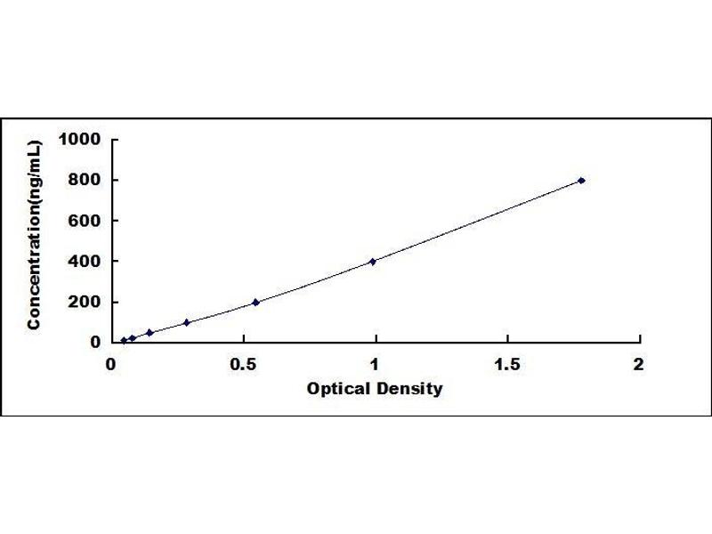 - Standard - Reconstitute the Standard with 0.5 mL of Standard Diluent, keep for 10 minutes at room temperature, shake gently (not to foam). The concentration of the standard in the stock solution is 800 ng/mL. Prepare 7 tubes containing 0.25 mL Standard Diluent and produce a double dilution series. Mix each tube thoroughly before the next transfer. Set up 7 points of diluted standard such as 800 ng/mL, 400 ng/mL, 200 ng/mL, 100 ng/mL, 50 ng/mL, 25 ng/mL, 12.5 ng/mL, and the last microcentrifuge tube with Standard Diluent is the blank as 0 ng/mL.