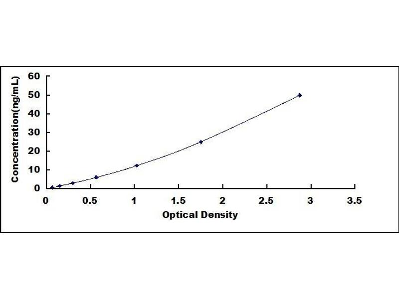 - Standard - Reconstitute the Standard with 1.0 mL of Standard Diluent, keep for 10 minutes at room temperature, shake gently (not to foam). The concentration of the standard in the stock solution is 100 ng/mL. Firstly dilute the stock solution to 50 ng/mL and the diluted standard serves as the highest standard (50 ng/mL). Then prepare 7 tubes containing 0.5 mL Standard Diluent and use the diluted standard to produce a double dilution series. Mix each tube thoroughly before the next transfer. Set up 7 points of diluted standard such as 50 ng/mL, 25 ng/mL, 12.5 ng/mL, 6.25 ng/mL, 3.12 ng/mL, 1.56 ng/mL, 0.78 ng/mL, and the last microcentrifuge tube with Standard Diluent is the blank as 0 ng/mL.