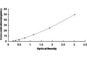 2. Standard - Reconstitute the Standard with 1.0 mL of Standard Diluent, keep for 10 minutes at room temperature, shake gently (not to foam). The concentration of the standard in the stock solution is 50 ng/mL. Prepare 7 tubes containing 0.5 mL Standard Diluent and produce a double dilution series. Mix each tube thoroughly before the next transfer. Set up 7 points of diluted standard such as 50 ng/mL, 25 ng/mL, 12.5 ng/mL, 6.25 ng/mL, 3.12 ng/mL, 1.56 ng/mL, 0.78 ng/mL, and the last microcentrifuge tube with Standard Diluent is the blank as 0 ng/mL.