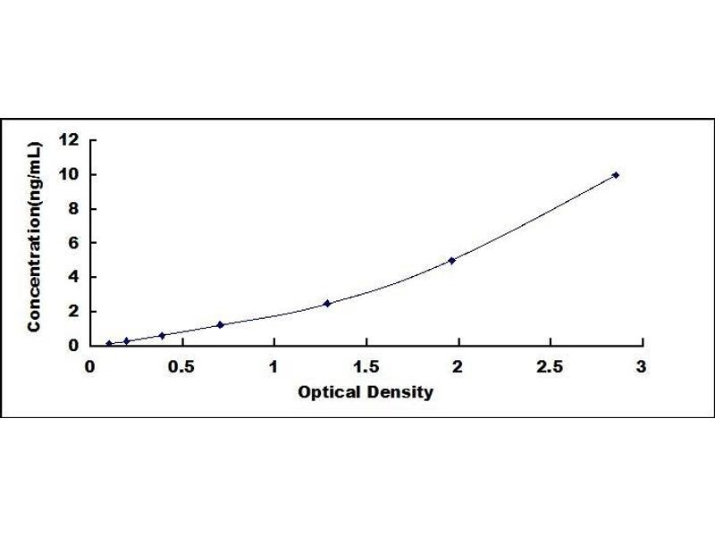 2. Standard - Reconstitute the Standard with 1.0 mL of Standard Diluent, keep for 10 minutes at room temperature, shake gently (not to foam). The concentration of the standard in the stock solution is 40 ng/mL. Firstly dilute the stock solution to 10 ng/mL and the diluted standard serves as the highest standard (10 ng/mL). Then prepare 7 tubes containing 0.5 mL Standard Diluent and use the diluted standard to produce a double dilution series. Mix each tube thoroughly before the next transfer. Set up 7 points of diluted standard such as 10 ng/mL, 5 ng/mL, 2.5 ng/mL, 1.25 ng/mL, 0.625 ng/mL, 0.312 ng/mL, 0.156 ng/mL, and the last microcentrifuge tube with Standard Diluent is the blank as 0 ng/mL.