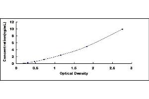 2. Standard - Reconstitute the Standard with 1.0 mL of Standard Diluent, keep for 10 minutes at room temperature, shake gently (not to foam). The concentration of the standard in the stock solution is 10 ng/mL. Prepare 7 tubes containing 0.5 mL Standard Diluent and produce a double dilution series. Mix each tube thoroughly before the next transfer. Set up 7 points of diluted standard such as 10 ng/mL, 5 ng/mL, 2.5 ng/mL, 1.25 ng/mL, 0.625 ng/mL, 0.312 ng/mL, 0.156 ng/mL, and the last microcentrifuge tube with Standard Diluent is the blank as 0 ng/mL.