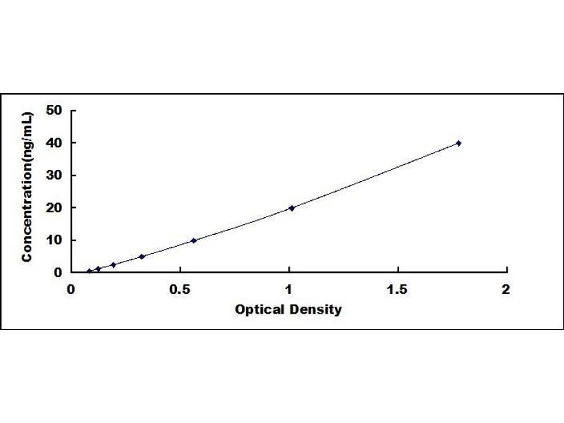 - Standard - Reconstitute the Standard with 1.0 mL of Standard Diluent, keep for 10 minutes at room temperature, shake gently (not to foam). The concentration of the standard in the stock solution is 80 ng/mL. Firstly dilute the stock solution to 40 ng/mL and the diluted standard serves as the highest standard (40 ng/mL). Then prepare 7 tubes containing 0.5 mL Standard Diluent and use the diluted standard to produce a double dilution series. Mix each tube thoroughly before the next transfer. Set up 7 points of diluted standard such as 40 ng/mL, 20 ng/mL, 10 ng/mL, 5 ng/mL, 2.5 ng/mL, 1.25 ng/mL, 0.625 ng/mL, and the last microcentrifuge tube with Standard Diluent is the blank as 0 ng/mL.