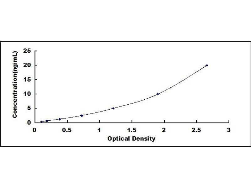 - Standard - Reconstitute the Standard with 1.0 mL of Standard Diluent, keep for 10 minutes at room temperature, shake gently (not to foam). The concentration of the standard in the stock solution is 200 ng/mL. Firstly dilute the stock solution to 20 ng/mL and the diluted standard serves as the highest standard (20 ng/mL). Then prepare 7 tubes containing 0.5 mL Standard Diluent and use the diluted standard to produce a double dilution series. Mix each tube thoroughly before the next transfer. Set up 7 points of diluted standard such as 20 ng/mL, 10 ng/mL, 5 ng/mL, 2.5 ng/mL, 1.25 ng/mL, 0.625 ng/mL, 0.312 ng/mL, and the last microcentrifuge tube with Standard Diluent is the blank as 0 ng/mL.