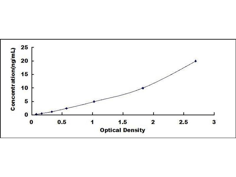 - Standard - Reconstitute the Standard with 1.0 mL of Standard Diluent, keep for 10 minutes at room temperature, shake gently (not to foam). The concentration of the standard in the stock solution is 40 ng/mL. Firstly dilute the stock solution to 20 ng/mL and the diluted standard serves as the highest standard (20 ng/mL). Then prepare 7 tubes containing 0.5 mL Standard Diluent and use the diluted standard to produce a double dilution series. Mix each tube thoroughly before the next transfer. Set up 7 points of diluted standard such as 20 ng/mL, 10 ng/mL, 5 ng/mL, 2.5 ng/mL, 1.25 ng/mL, 0.625 ng/mL, 0.312 ng/mL, and the last microcentrifuge tube with Standard Diluent is the blank as 0 ng/mL.