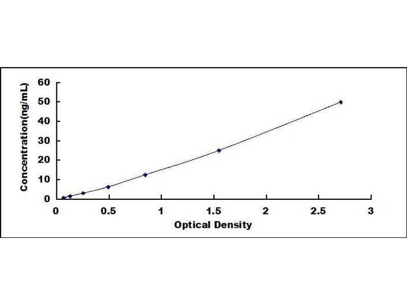 - Standard - Reconstitute the Standard with 0.5 mL of Standard Diluent, keep for 10 minutes at room temperature, shake gently (not to foam). The concentration of the standard in the stock solution is 50 ng/mL. Prepare 7 tubes containing 0.25 mL Standard Diluent and produce a double dilution series. Mix each tube thoroughly before the next transfer. Set up 7 points of diluted standard such as 50 ng/mL, 25 ng/mL, 12.5 ng/mL, 6.25 ng/mL, 3.12 ng/mL, 1.56 ng/mL, 0.78 ng/mL, and the last microcentrifuge tube with Standard Diluent is the blank as 0 ng/mL.