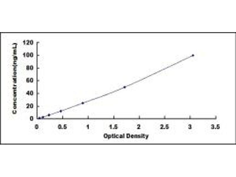 - Standard - Reconstitute the Standard with 1.0 mL of Standard Diluent, keep for 10 minutes at room temperature, shake gently (not to foam). The concentration of the standard in the stock solution is 200 ng/mL. Firstly dilute the stock solution to 100 ng/mL and the diluted standard serves as the highest standard (100 ng/mL). Then prepare 7 tubes containing 0.5 mL Standard Diluent and use the diluted standard to produce a double dilution series. Mix each tube thoroughly before the next transfer. Set up 7 points of diluted standard such as 100 ng/mL, 50 ng/mL, 25 ng/mL, 12.5 ng/mL, 6.25 ng/mL, 3.12 ng/mL, 1.56 ng/mL, and the last microcentrifuge tube with Standard Diluent is the blank as 0 ng/mL.