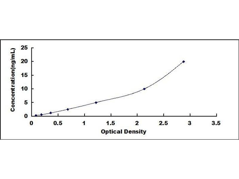 - Standard - Reconstitute the Standard with 1.0 mL of Standard Diluent, keep for 10 minutes at room temperature, shake gently (not to foam). The concentration of the standard in the stock solution is 40 ng/mL. Firstly dilute the stock solution to 20 ng/mL and the diluted standard serves as the highest standard (20 ng/mL). Then prepare 7 tubes containing 0.5 mL Standard Diluent and use the diluted standard to produce a double dilution series. Mix each tube thoroughly before the next transfer. Set up 7 points of diluted standard such as 20 ng/mL, 10 ng/mL, 5 ng/mL, 2.5 ng/mL, 1.25 ng/mL, 0.625 ng/mL, 0.312 ng/mL, and the last microcentrifuge tube with Standard Diluent is the blank as 0 ng/mL.