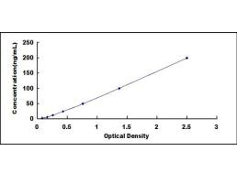 - Standard - Reconstitute the Standard with 1.0 mL of Standard Diluent, keep for 10 minutes at room temperature, shake gently (not to foam). The concentration of the standard in the stock solution is 800 ng/mL. Firstly dilute the stock solution to 200 ng/mL and the diluted standard serves as the highest standard (200 ng/mL). Then prepare 7 tubes containing 0.5 mL Standard Diluent and use the diluted standard to produce a double dilution series. Mix each tube thoroughly before the next transfer. Set up 7 points of diluted standard such as 200 ng/mL, 100 ng/mL, 50 ng/mL, 25 ng/mL, 12.5 ng/mL, 6.25 ng/mL, 3.12 ng/mL, and the last microcentrifuge tube with Standard Diluent is the blank as 0 ng/mL.