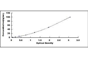 2. Standard - Reconstitute the Standard with 1.0 mL of Standard Diluent, keep for 10 minutes at room temperature, shake gently (not to foam). The concentration of the standard in the stock solution is 100 ng/mL. Prepare 7 tubes containing 0.5 mL Standard Diluent and produce a double dilution series. Mix each tube thoroughly before the next transfer. Set up 7 points of diluted standard such as 100 ng/mL, 50 ng/mL, 25 ng/mL, 12.5 ng/mL, 6.25 ng/mL, 3.12 ng/mL, 1.56 ng/mL, and the last microcentrifuge tube with Standard Diluent is the blank as 0 ng/mL.