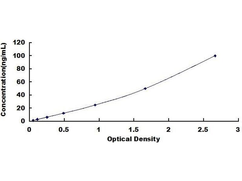 - Standard - Reconstitute the Standard with 1.0 mL of Standard Diluent, keep for 10 minutes at room temperature, shake gently (not to foam). The concentration of the standard in the stock solution is 200 ng/mL. Firstly dilute the stock solution to 100 ng/mL and the diluted standard serves as the highest standard (100 ng/mL). Then prepare 7 tubes containing 0.5 mL Standard Diluent and use the diluted standard to produce a double dilution series. Mix each tube thoroughly before the next transfer. Set up 7 points of diluted standard such as 100 ng/mL, 50 ng/mL, 25 ng/mL, 12.5 ng/mL, 6.25 ng/mL, 3.12 ng/mL, 1.56 ng/mL, and the last microcentrifuge tube with Standard Diluent is the blank as 0 ng/mL.