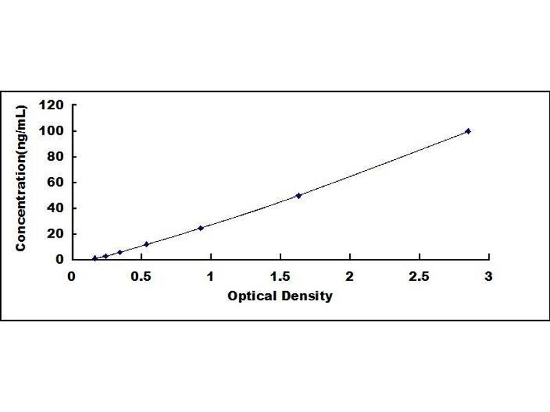 - Standard - Reconstitute the Standard with 1.0 mL of Standard Diluent, keep for 10 minutes at room temperature, shake gently (not to foam). The concentration of the standard in the stock solution is 200 ng/mL. Firstly dilute the stock solution to 100 ng/mL and the diluted standard serves as the highest standard (100 ng/mL). Then prepare 7 tubes containing 0.5 mL Standard Diluent and use the diluted standard to produce a double dilution series. Mix each tube thoroughly before the next transfer. Set up 7 points of diluted standard such as 100 ng/mL, 50 ng/mL, 25 ng/mL, 12.5 ng/mL, 6.25 ng/mL, 3.12 ng/mL, 1.56 ng/mL, and the last microcentrifuge tube with Standard Diluent is the blank as 0 ng/mL.