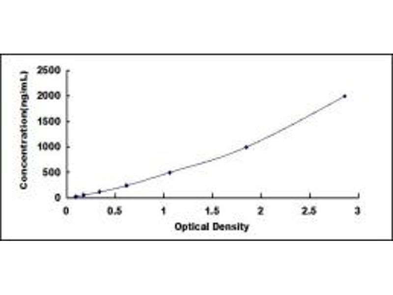 - Standard - Reconstitute the Standard with 1.0 mL of Standard Diluent, keep for 10 minutes at room temperature, shake gently (not to foam). The concentration of the standard in the stock solution is 2,000 ng/mL. Prepare 7 tubes containing 0.5 mL Standard Diluent and produce a double dilution series. Mix each tube thoroughly before the next transfer. Set up 7 points of diluted standard such as 2,000 ng/mL,1,000 ng/mL, 500 ng/mL, 250 ng/mL, 125 ng/mL, 62.5 ng/mL, 31.2 ng/mL, and the last microcentrifuge tube with Standard Diluent is the blank as 0 ng/mL.